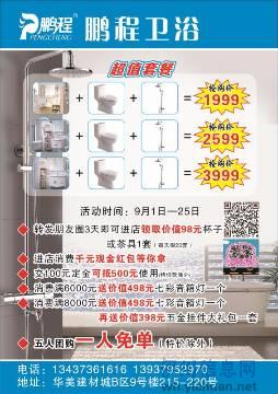 鹏程卫浴在试营业期间有你意想不到的豪礼和优惠,欢迎来电咨询。